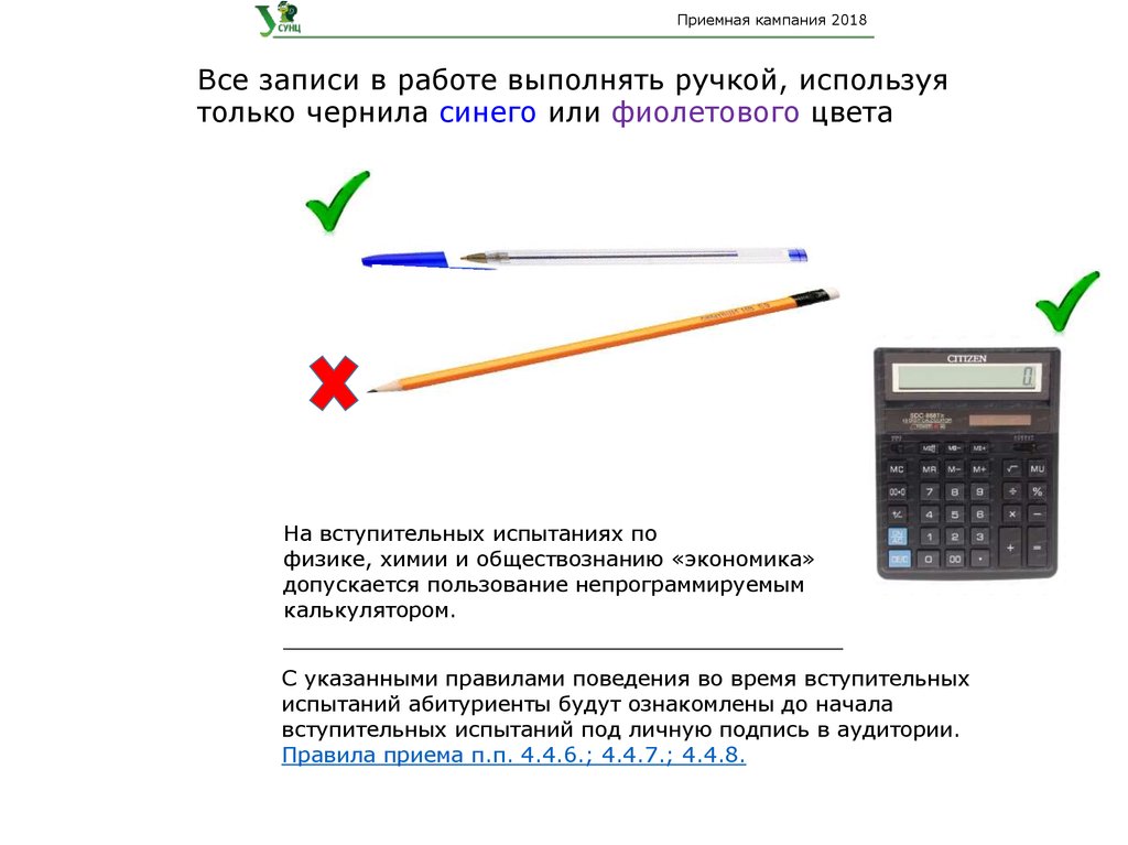 Приемная кампания 2018Все записи в работе выполнять ручкой, используя