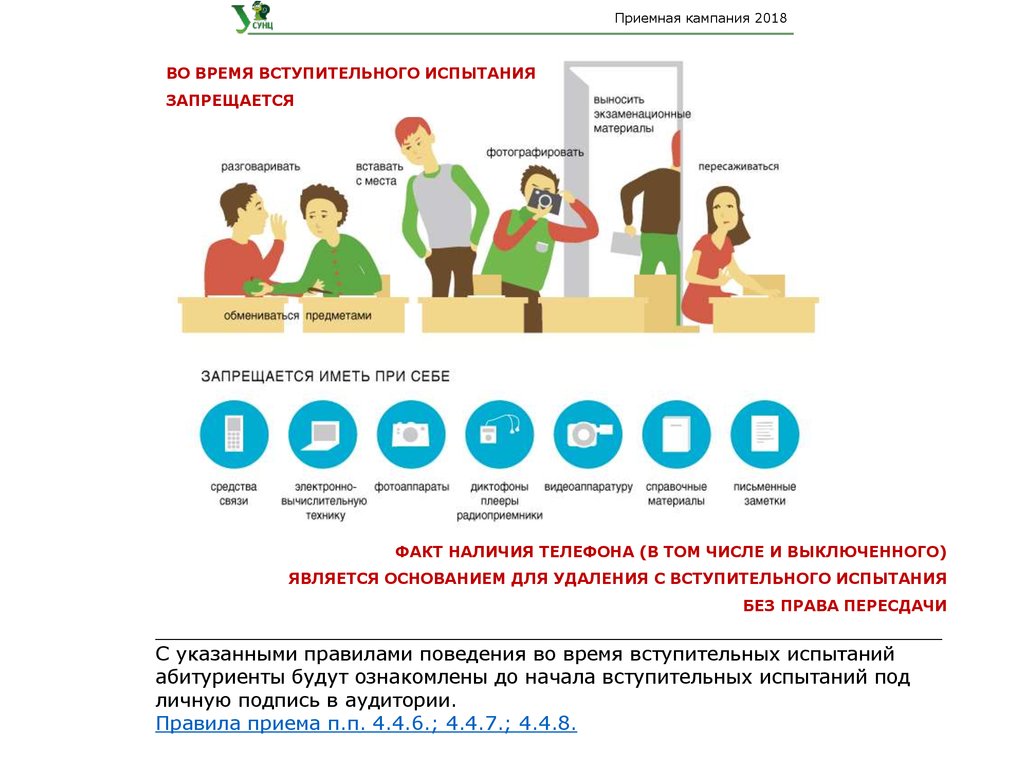 С указанными правилами поведения во время вступительных