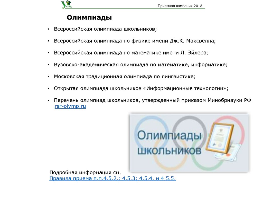 Приемная кампания 2018Олимпиады