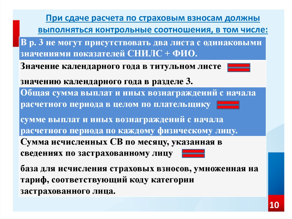 При сдаче расчета по страховым взносам должнывыполняться контрольные соотношения, в том числе: