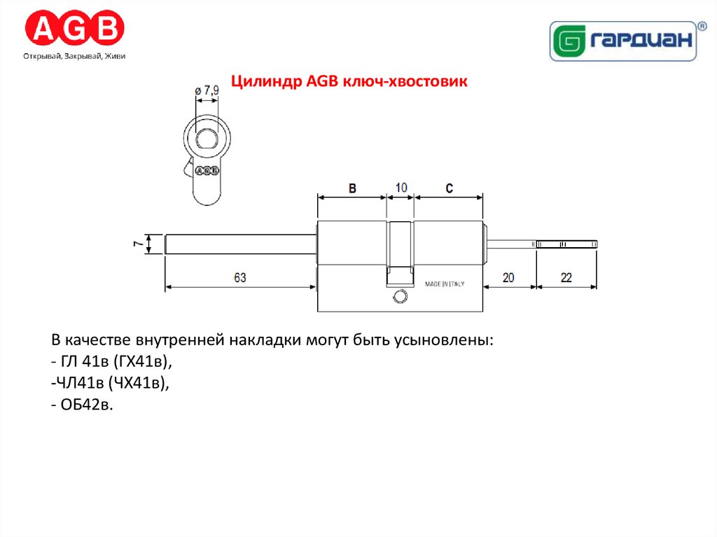 Цилиндр AGB ключ-хвостовикВ качестве внутренней накладки могут быть усыновлены:
