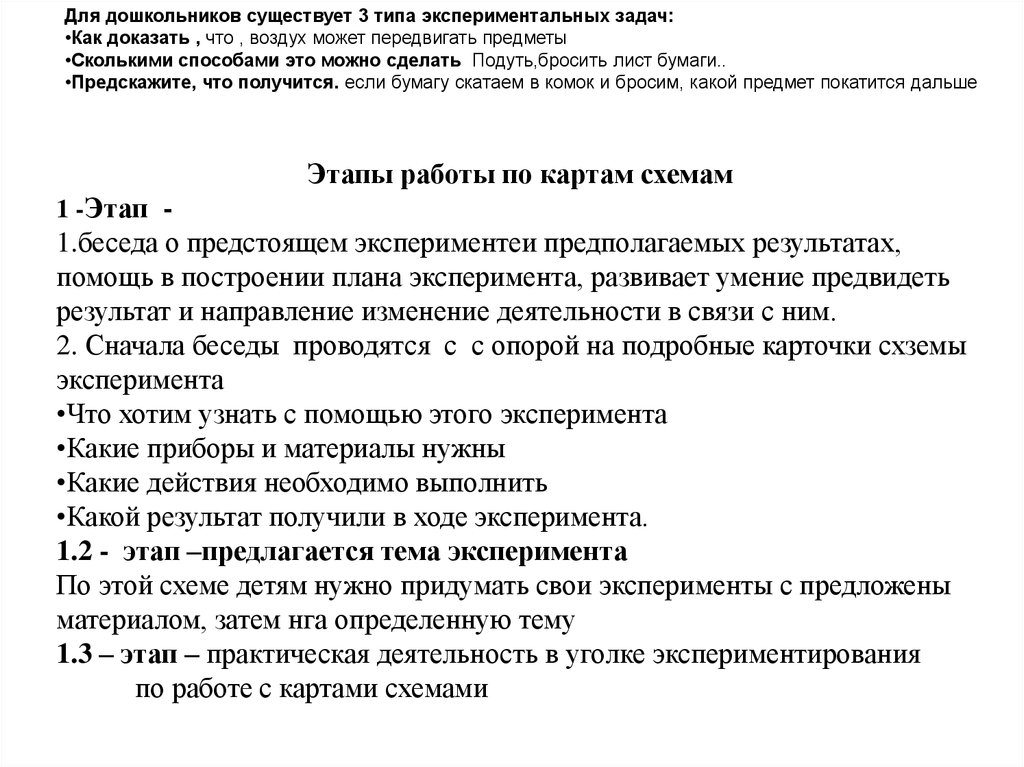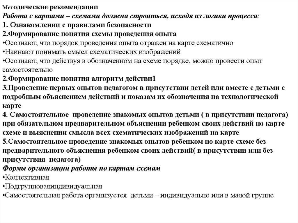 Работа с картами схемами для проведения опытов•Применение карточек-схем способствуют развитию у детей дошкольного