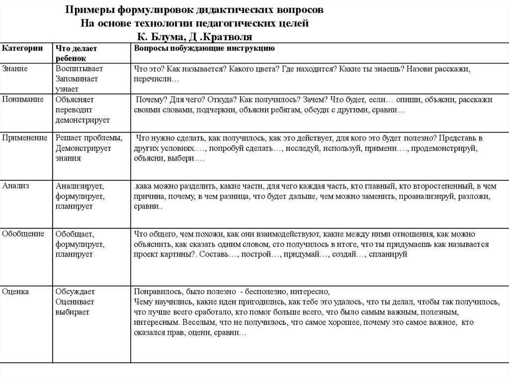Примеры формулировок дидактических вопросовНа основе технологии педагогических целей