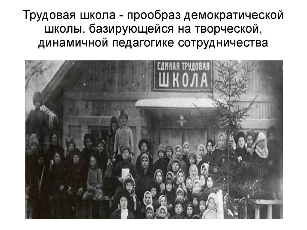 Трудовая школа - прообраз демократическойшколы, базирующейся на творческой,