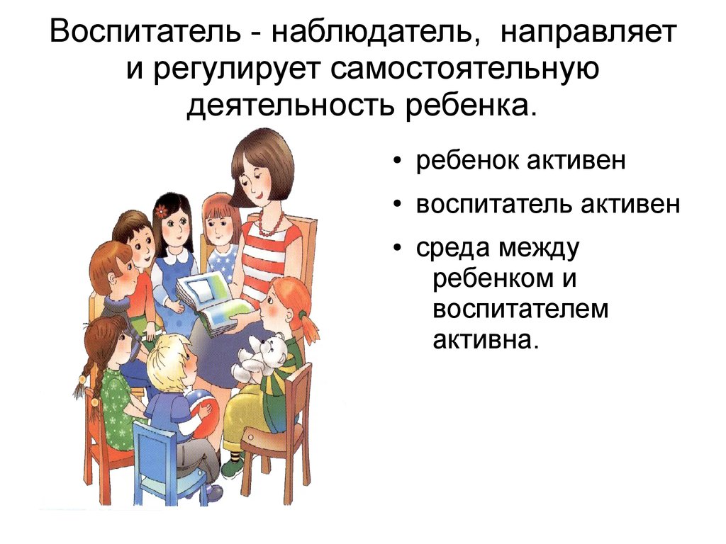Воспитатель - наблюдатель, направляети регулирует самостоятельную