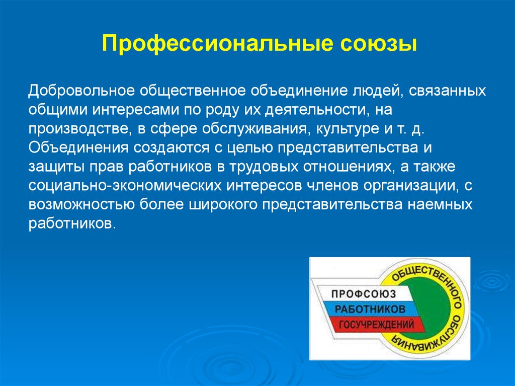 Профессиональные союзыДобровольное общественное объединение людей, связанных