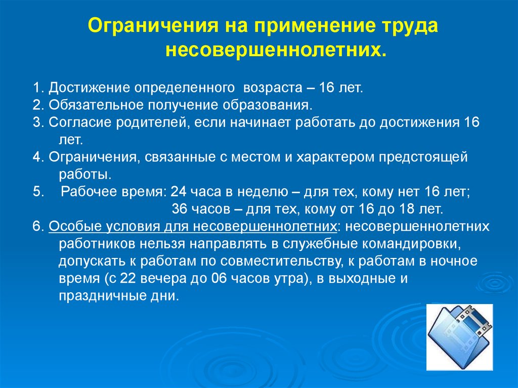 5. Рабочее время: 24 часа в неделю – для тех, кому нет 16 лет;