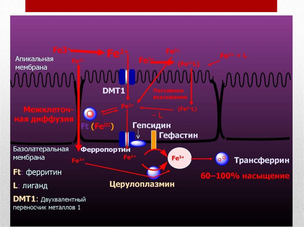 только кишечное всасывание железа и его релиз макрофагами но и перенос через
