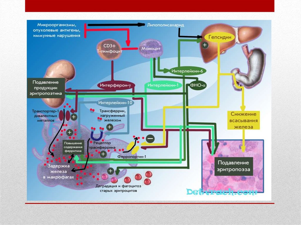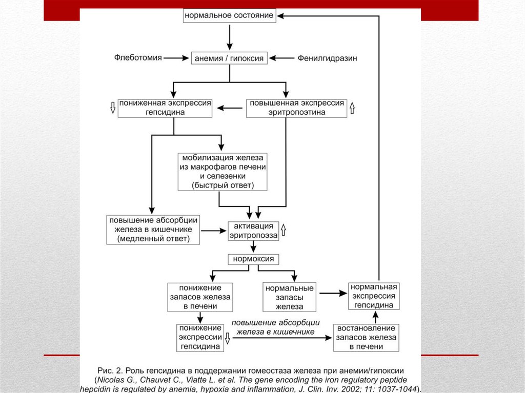 • Другими аргументами, свидетельствующими о ключевой роли гепсидина в регуляции