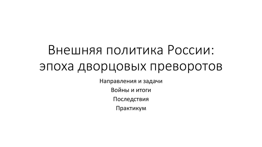 1. Внешняя политика России: эпоха дворцовых преворотов