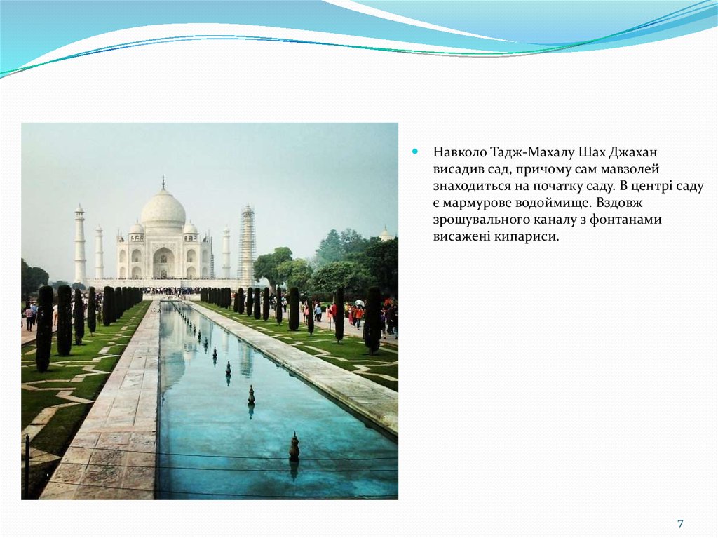 Навколо Тадж-Махалу Шах Джаханвисадив сад, причому сам мавзолей