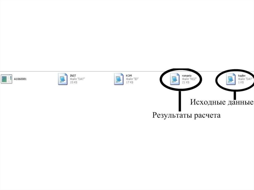 Расчеты производятся присохранении исходных данных в файле «topliw»