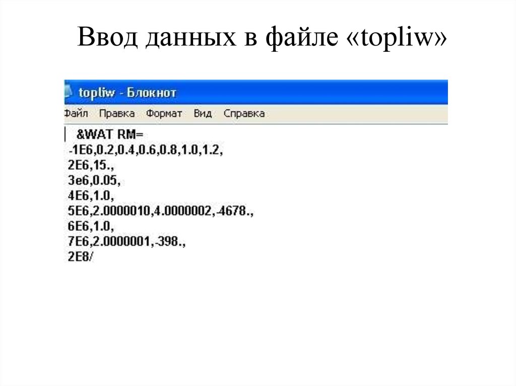 Ввод данных в файле «topliw»12.