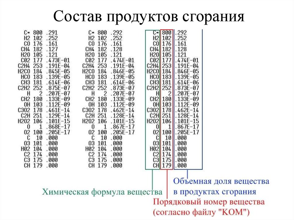 в составе продуктов сгорания