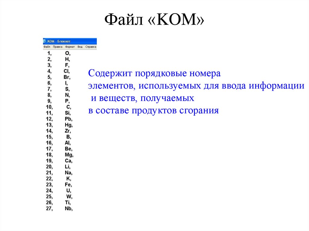 Файл «KOM»Содержит порядковые номера