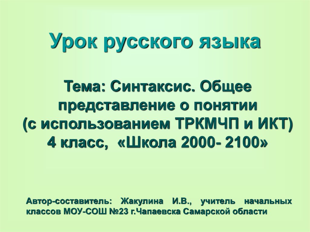 Синтаксис. Общее представление о понятии (с использованием ТРКМЧП и ИКТ) 4 класс, «Школа 2000- 2100»