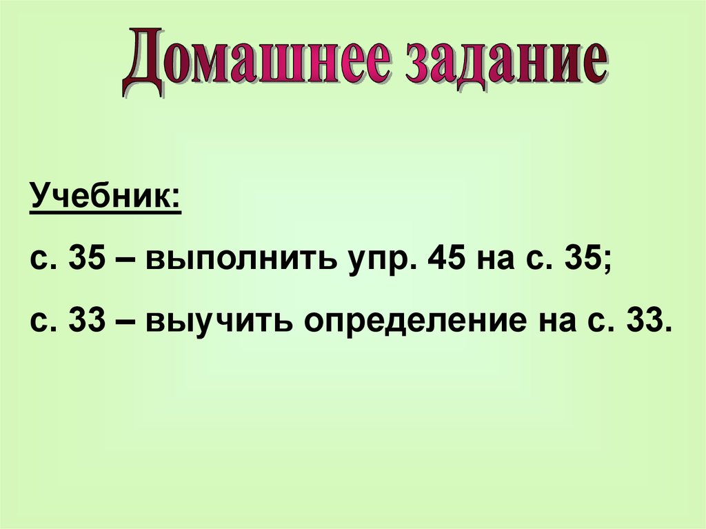 Учебник:с. 35 – выполнить упр. 45 на с. 35;