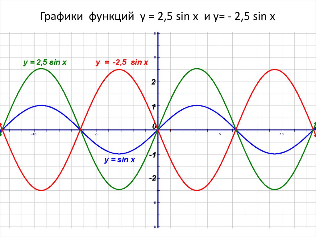 Графики функций у = 2,5 sin x и у= - 2,5 sin х8