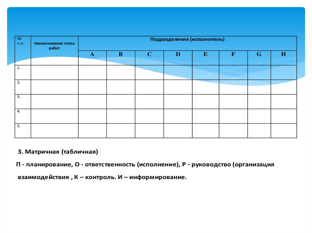 П - планирование, О - ответственность (исполнение), Р - руководство (организация