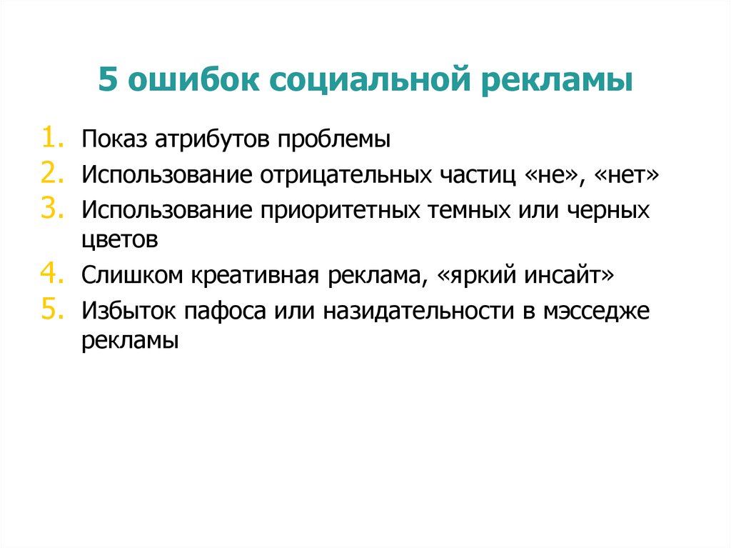 5 ошибок социальной рекламы1. Показ атрибутов проблемы