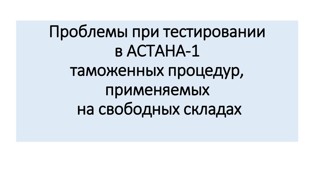 1. Проблемы при тестировании в АСТАНА-1 таможенных процедур, применяемых на свободных складах