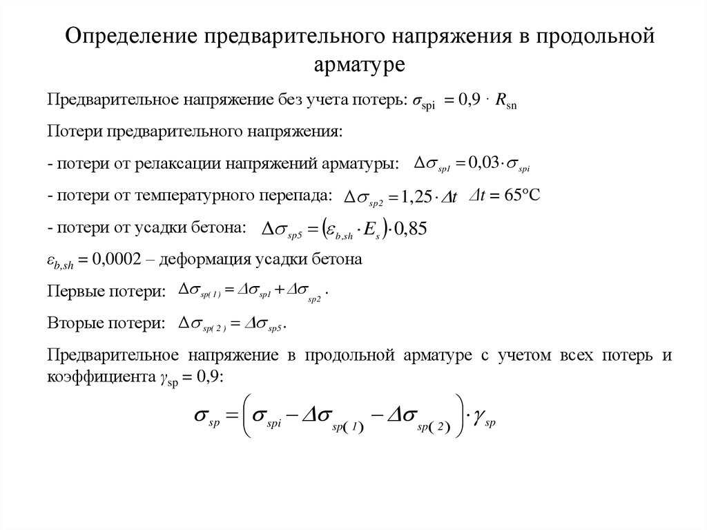 Предварительное напряжение без учета потерь: σspi = 0,9 · Rsn