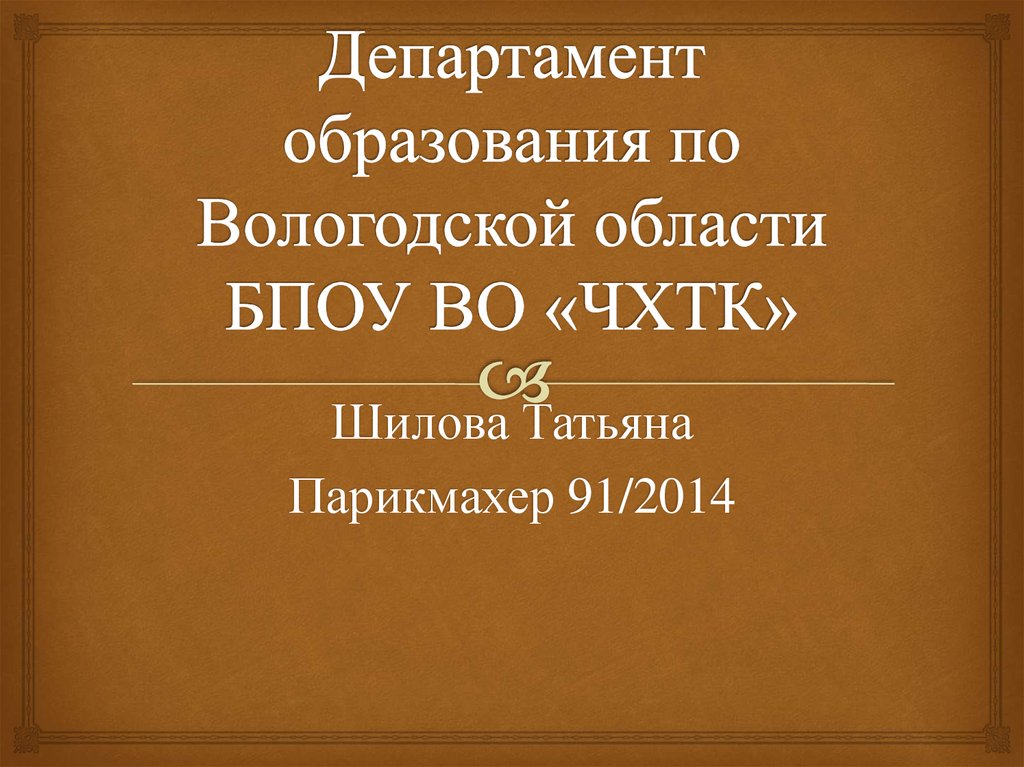 Департамент образования по Вологодской области БПОУ ВО «ЧХТК». Профессия парикмахер
