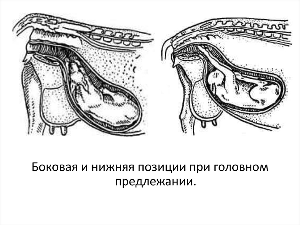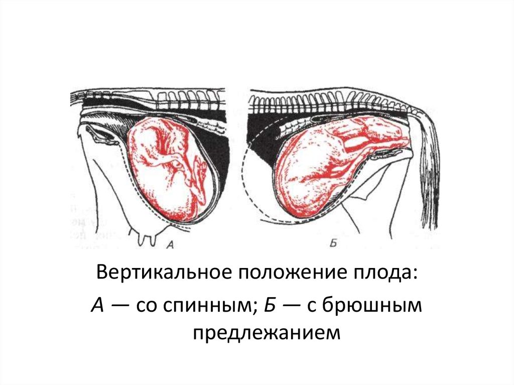 Вертикальное положение плода:А — со спинным; Б — с брюшным