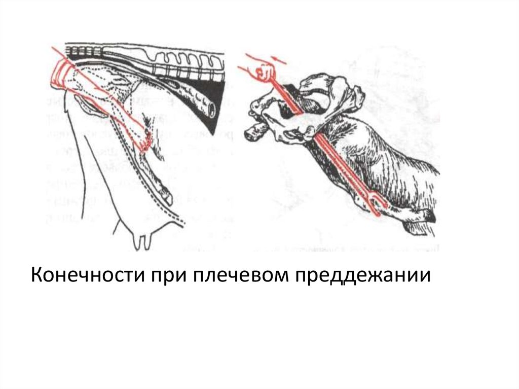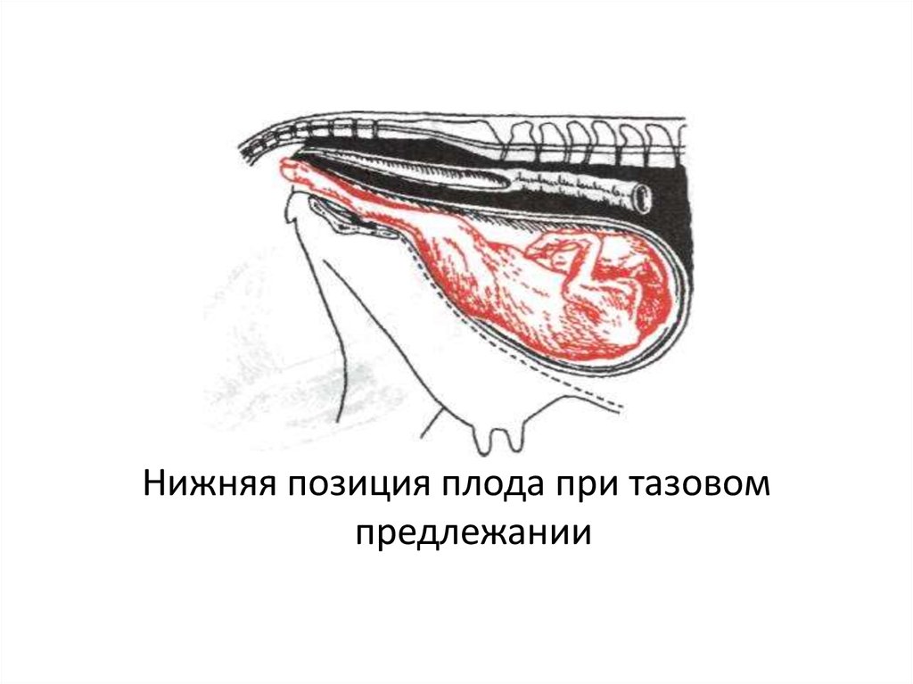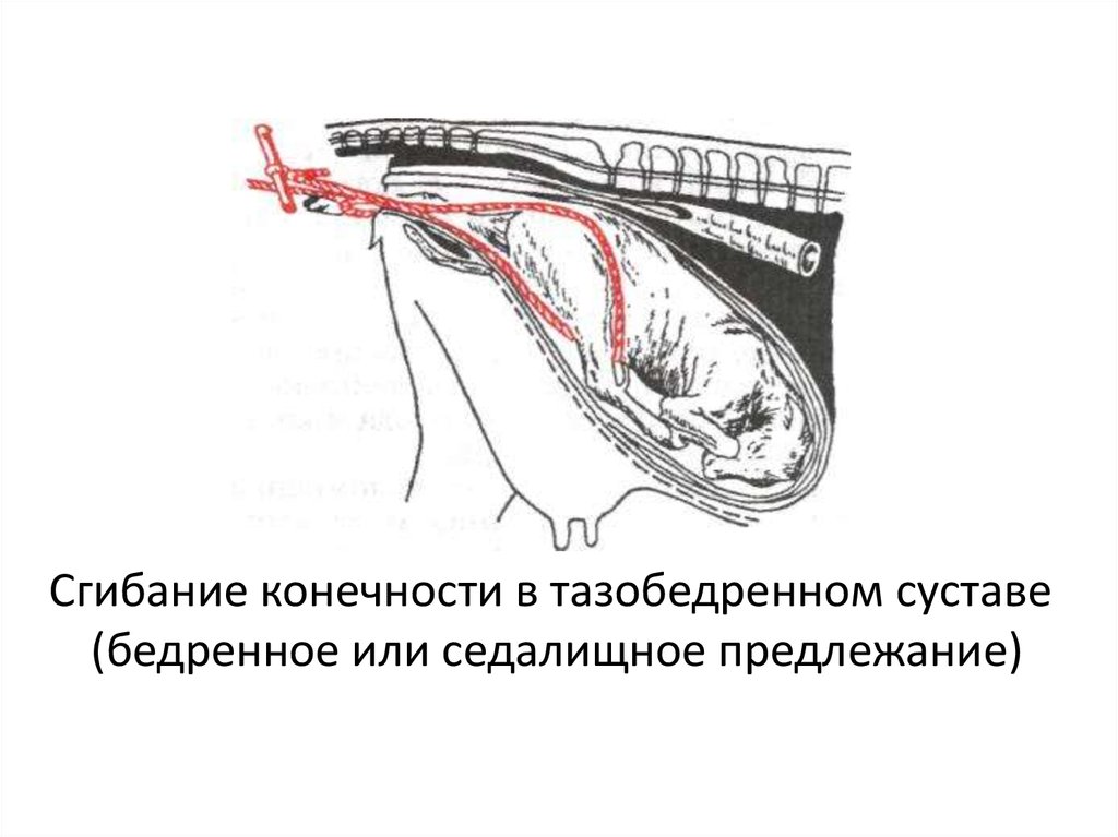 Сгибание конечности в тазобедренном суставе(бедренное или седалищное предлежание)