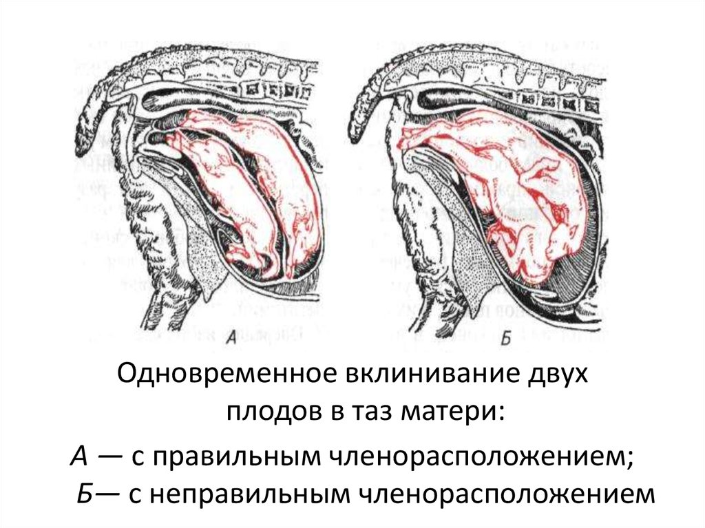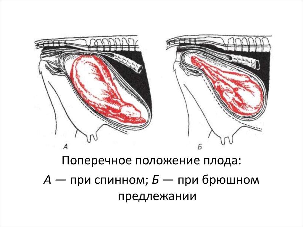 Поперечное положение плода:А — при спинном; Б — при брюшном