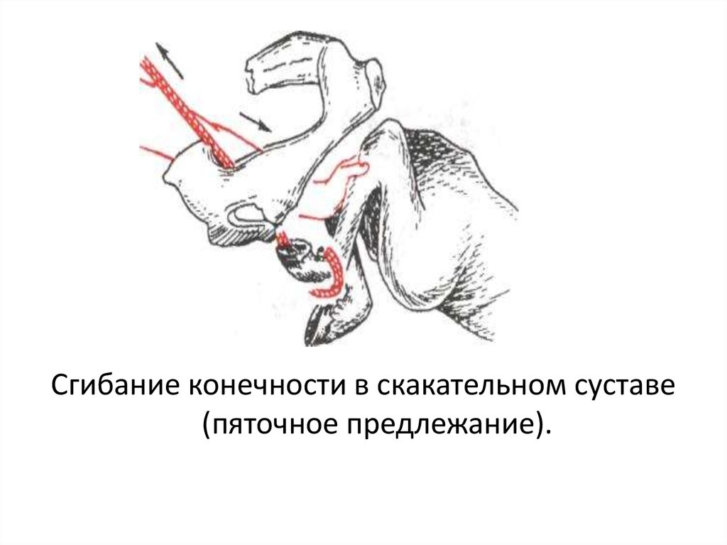 Сгибание конечности в скакательном суставе(пяточное предлежание).
