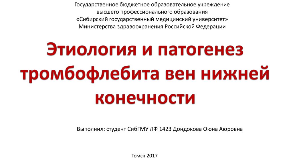 Этиология и патогенез тромбофлебита вен нижней конечности