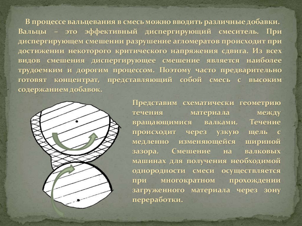 применения вальцев для смешения, которое происходит из–за того, что