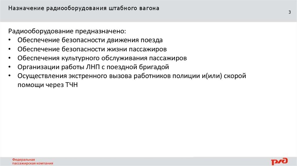 Назначение радиооборудования штабного вагонаРадиооборудование предназначено: