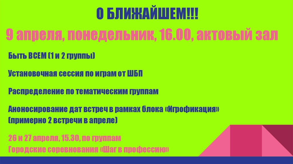 О БЛИЖАЙШЕМ!!!9 апреля, понедельник, 16.00, актовый зал