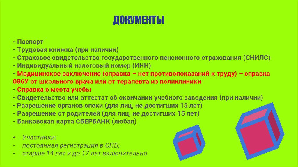 - Разрешение от родителей (для лиц, не достигших 15 лет)