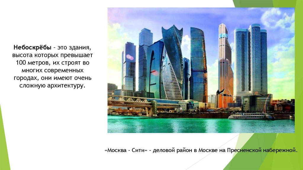 «Москва - Сити» - деловой район в Москве на Пресненской набережной.