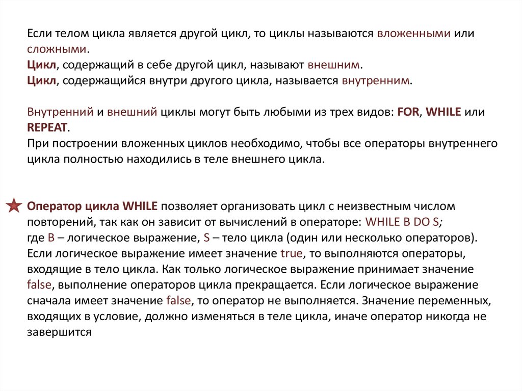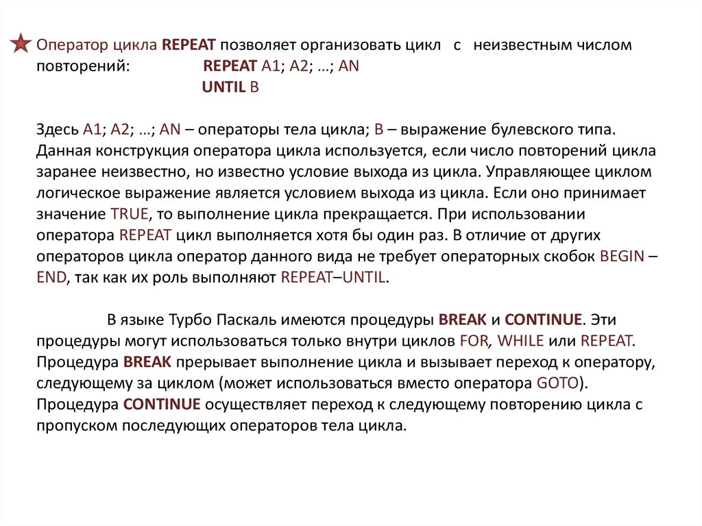 операторов цикла оператор данного вида не требует операторных скобок BEGIN –