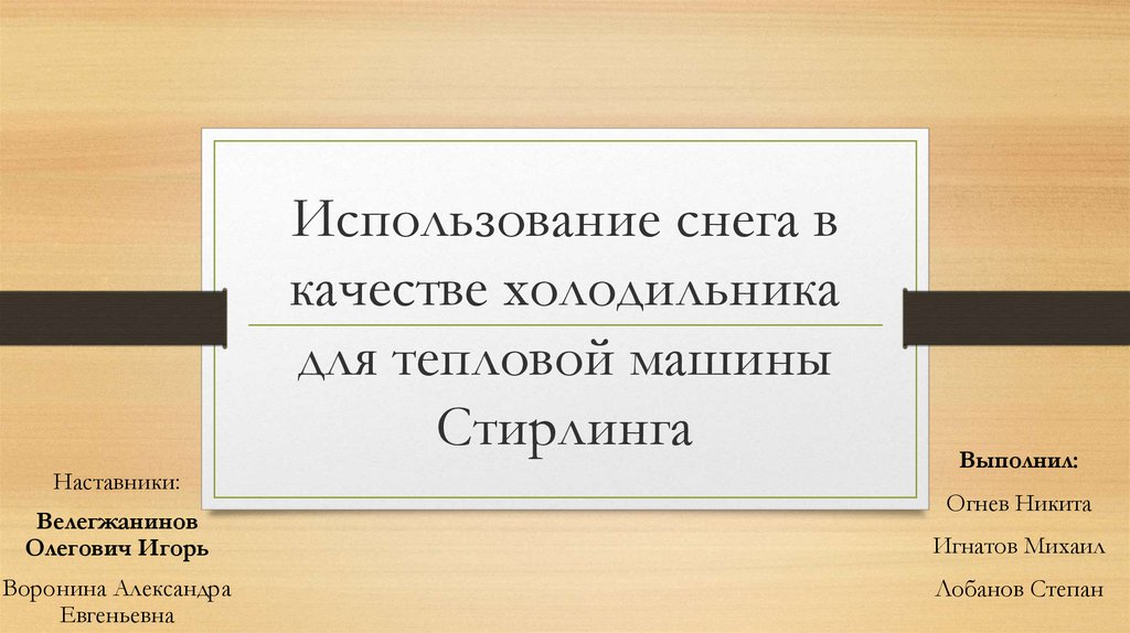 1. Использование снега в качестве холодильника для тепловой машины Стирлинга