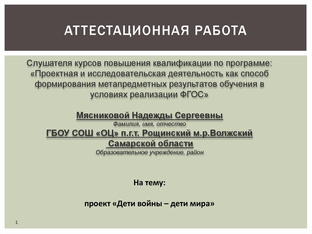 Аттестационная работа. Проект «Дети войны – дети мира»