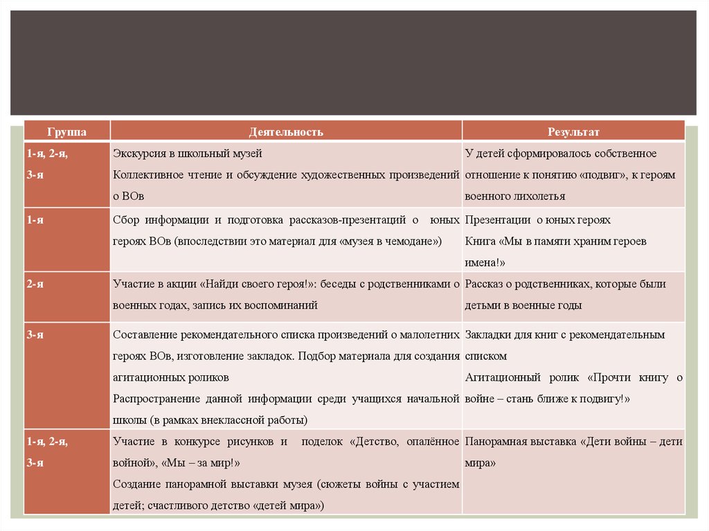 героях ВОв (впоследствии это материал для «музея в чемодане»)