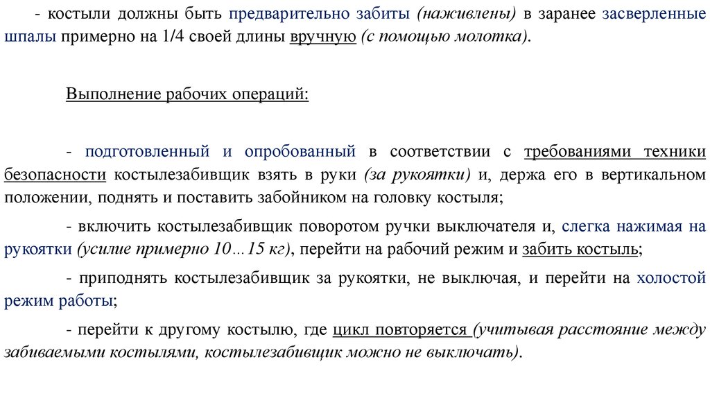 безопасности костылезабивщик взять в руки (за рукоятки) и, держа его в вертикальном