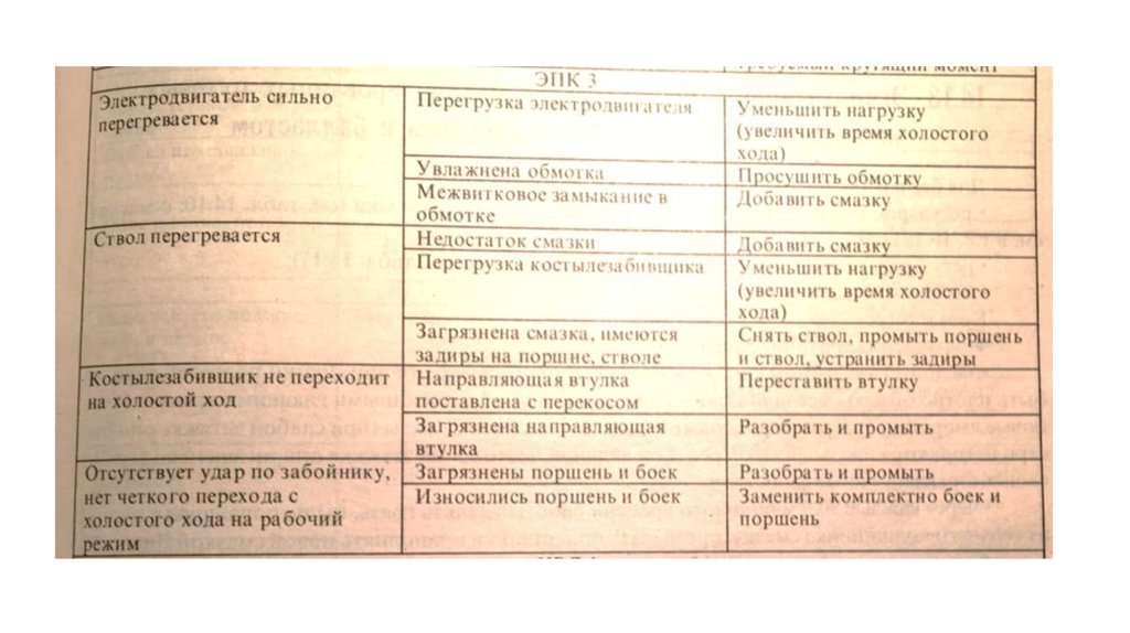 В процессе работы костылезабивщика надо следить за температурой корпусаэлектродвигателя и ствола. Когда длительное прикосновение ладонью становится