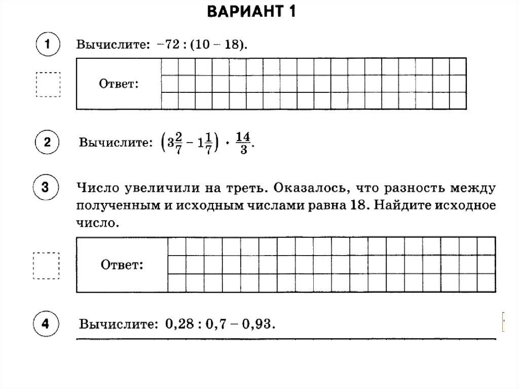 ВАРИАНТ 1 (вписать ответы в окна) .