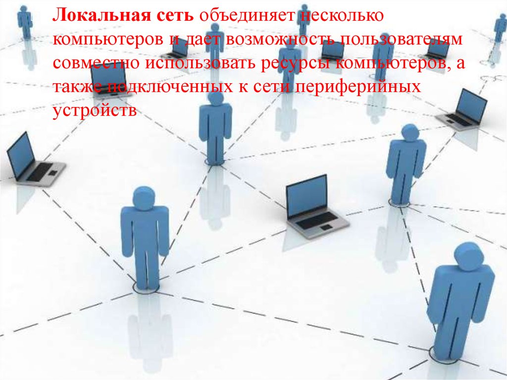 Локальная сеть объединяет несколькокомпьютеров и дает возможность пользователям