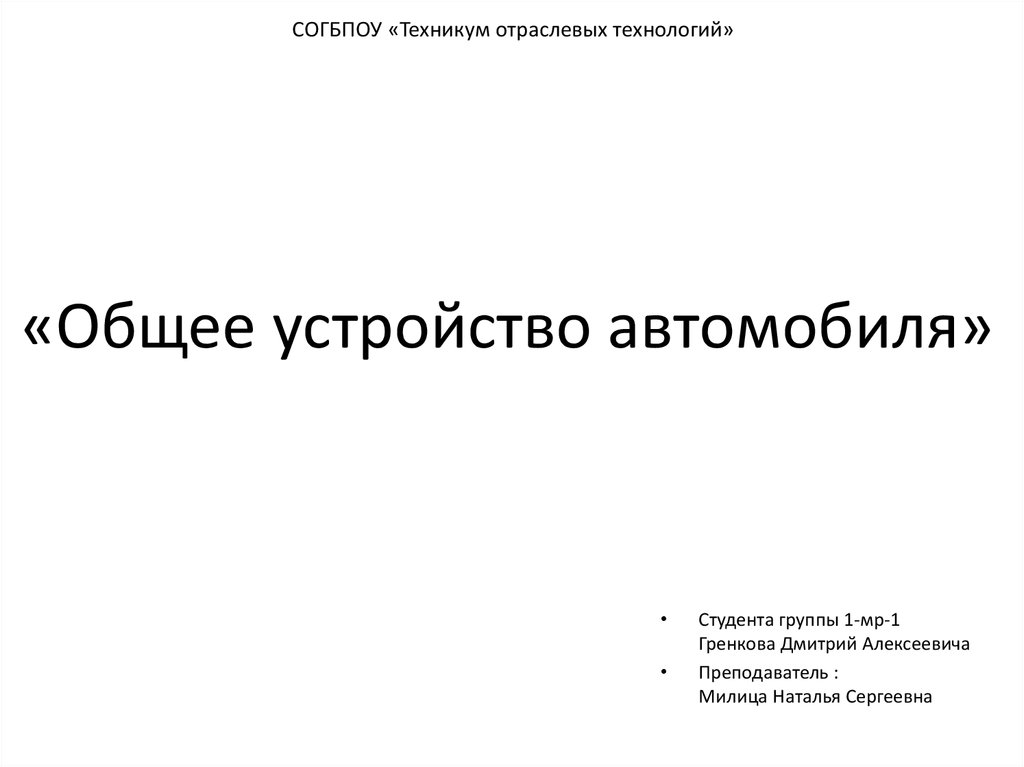 «Общее устройство автомобиля»