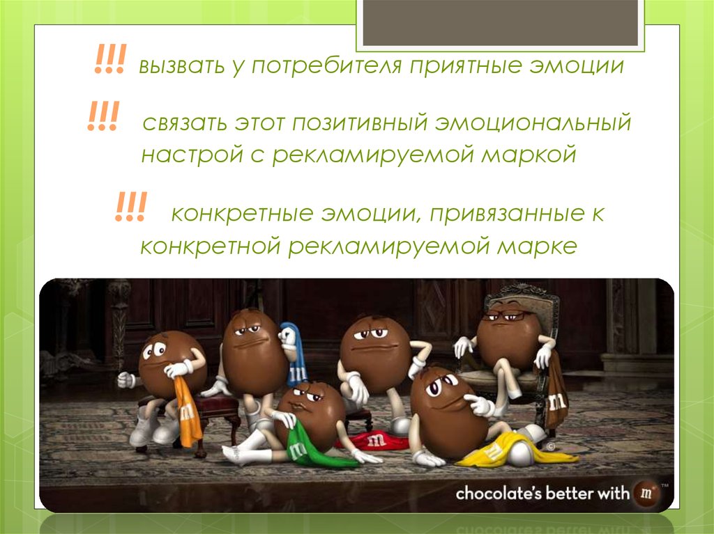!!! вызвать у потребителя приятные эмоции!!! связать этот позитивный эмоциональный