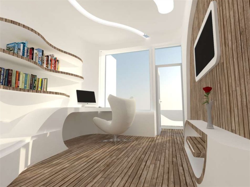 предполагается из стеклофибробетона , а мебель из дерева