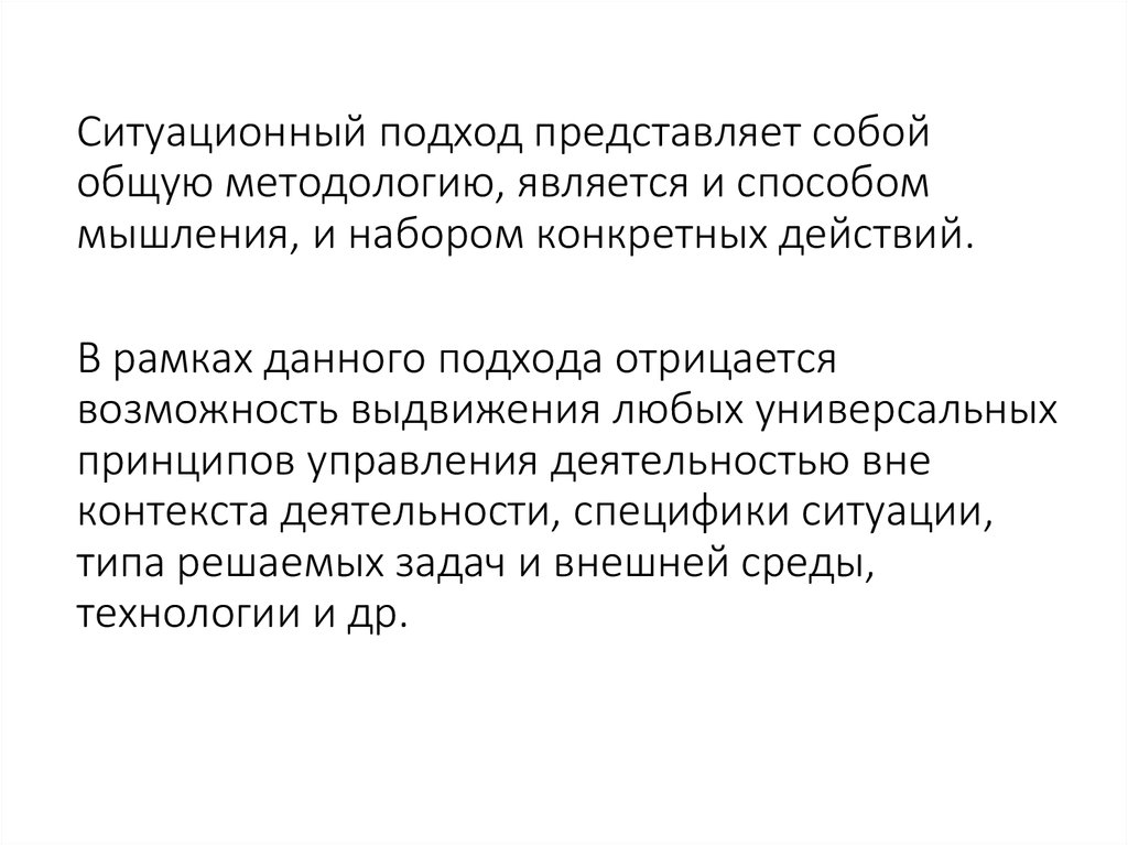 Ситуационный подход представляет собойобщую методологию, является и способом