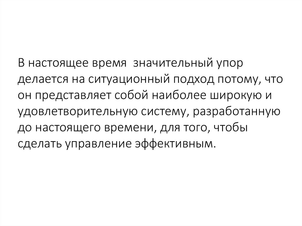 В настоящее время значительный упорделается на ситуационный подход потому, что